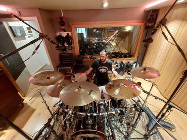 **JEREMY ALDRIDGE** on drums, pounding out rhythms that'll make your heart race.